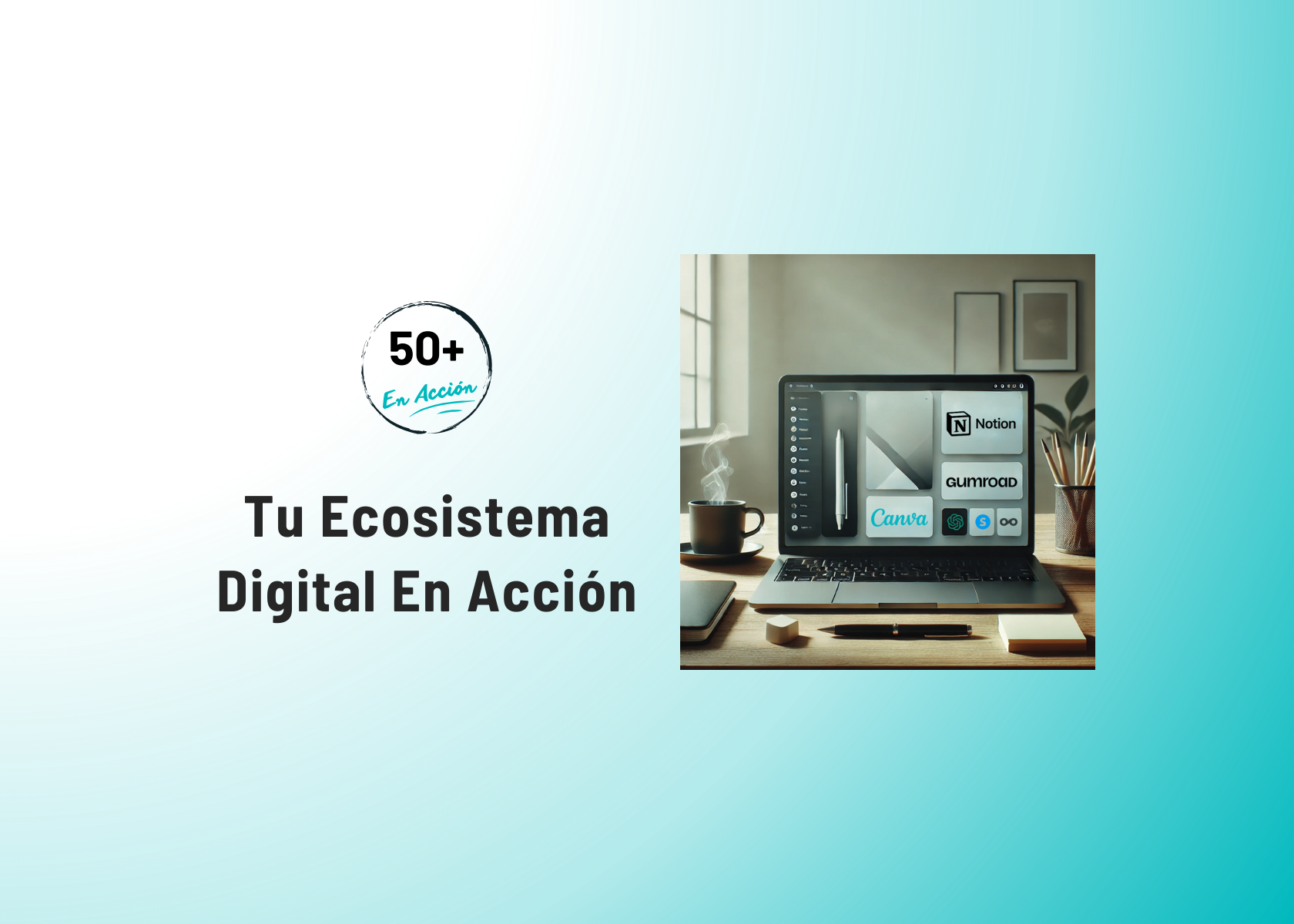 Ahora que conoces el ecosistema digital de 50+ En Acción, tienes en tus manos las herramientas para investigar, crear, vender y hacer crecer tu negocio digital sin complicaciones.