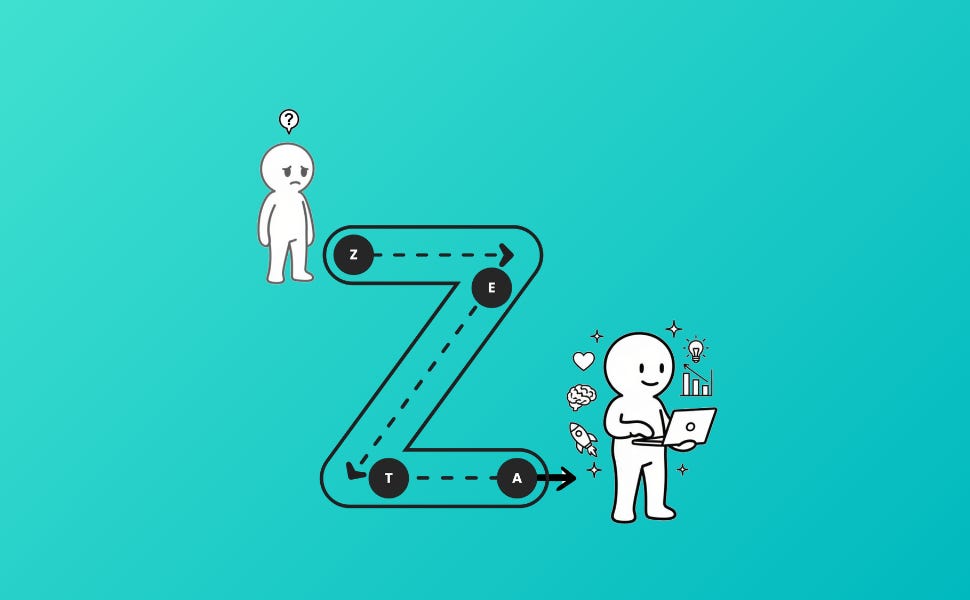 Cómo Club Zeta lo resuelve: El Método ZETA está estructurado en 26 semanas con acciones específicas. No decides qué aprender. Sigues el camino. Semana 1: esto. Semana 2: esto otro. Sin parálisis. Sin decisiones infinitas.